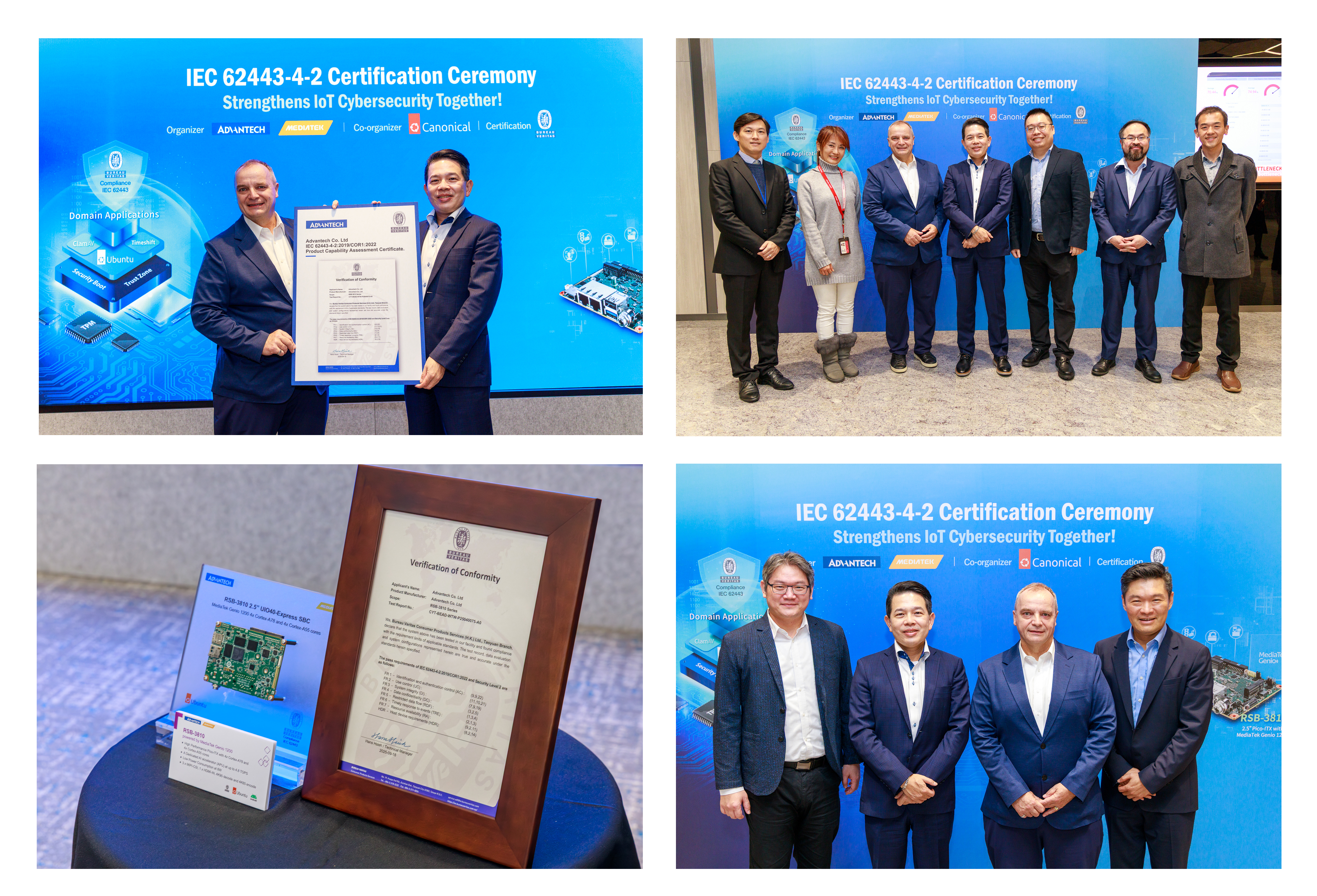 CK Wang, General Manager of MediaTek's IoT Business Unit, added: "In response to growing CRA compliance demand in the European market, MediaTek partnered with Advantech to complete certification of the Arm-based RSB-3810 industrial SBC—powered by the Genio 1200 IoT platform and running Ubuntu Pro OS—under the IEC 62443 standard, further reinforcing the cybersecurity posture of the platform for endpoint applications."